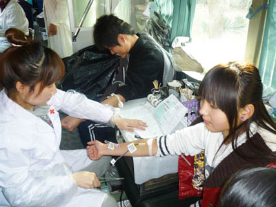 采访中,有许多同学受到了我校医学院学生李晓兵的影响,一位综合部的同学激动地说:“自踏入校门起就听到了李晓兵的事迹,人家连造血干细胞都能捐,咱们献点血算什么?倒是希望自己献的血能够派上用场,给那些需要帮助的人提供方便。”还有一位女同学自豪地说:“今天正好是传统节日冬至,以前只知道用吃饺子的习俗去庆祝,今天我要做一件更加有意义的事情,那就是义务献血,我想这一生我都不会忘记自己在母校第一次献血。”