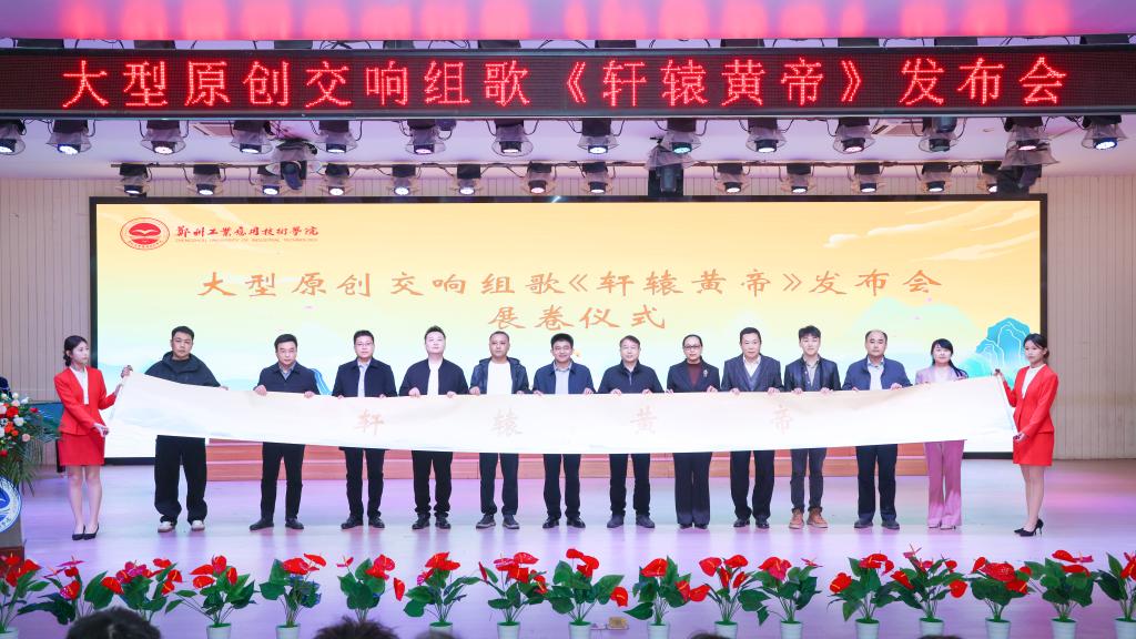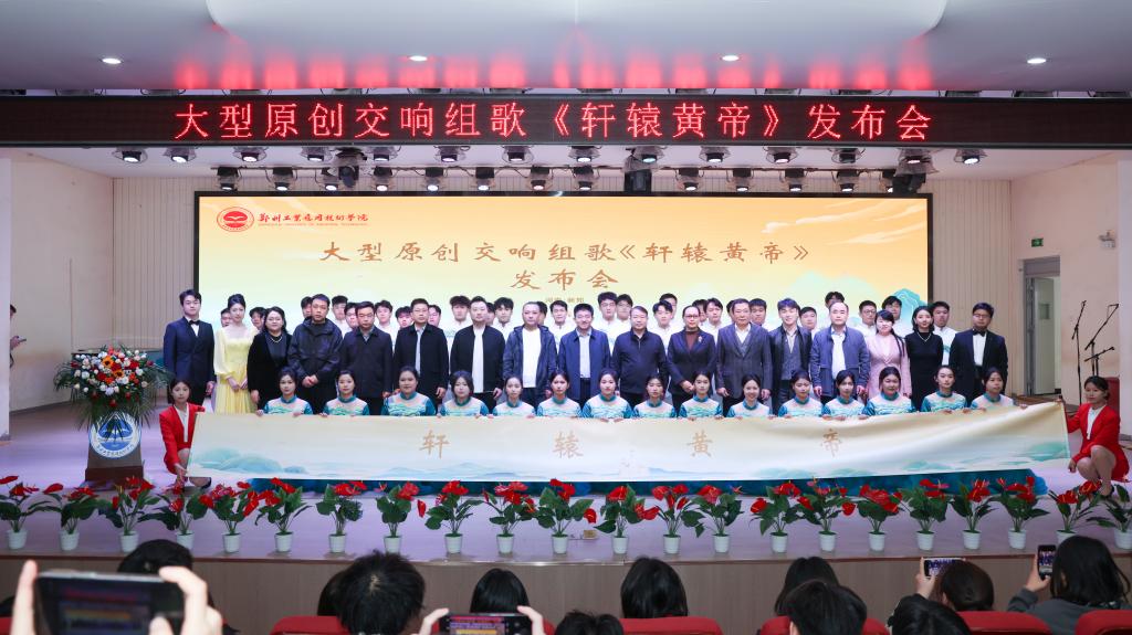 (文/陈欢 图/赵焓)11月3日,我校举行大型原创交响组歌《轩辕黄帝》发布会。新郑市黄帝故里景区党工委书记、管委会主任王淑慧,中国音乐家协会理事、河南省音乐家协会驻会副主席、河南理工大学音乐学院院长李新现,河南师范大学音乐舞蹈学院副院长(主持工作)罗强,河南师范大学音乐舞蹈学院副院长魏波,河南广电教育运营总监徐宁;学校校长闫兵,党委副书记、副校长吴杰霞,副校长贾圣强,工会主席、校长助理高红艳出席发布会;组歌主创团队核心成员许会锋、晁然、赵飞及有关单位负责人、师生代表等参加发布会。发布会由学校音乐与教育学院院长魏熙畅主持。
