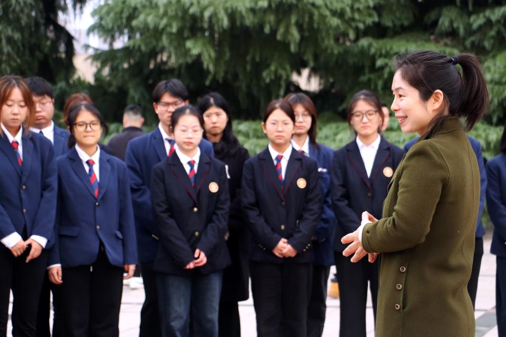 马克思主义学院闫方老师在烈士纪念碑前讲授“英烈之光铸信仰 用实践之力传薪火”主题思政课,引导学员理解英烈精神的内涵,鼓励大家在实践中传承红色基因,做到知行合一。