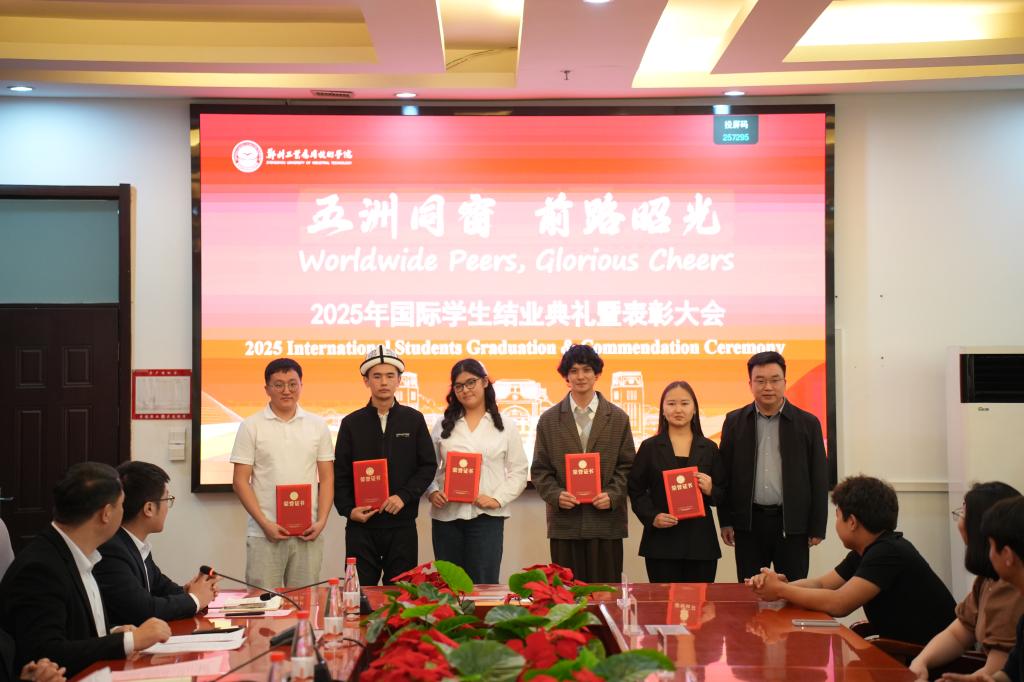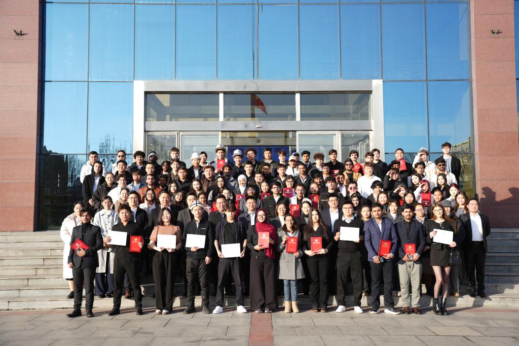 (文/任梦阳 图/刘婷)1月9日,我校2025年国际学生结业典礼暨表彰大会在行政管理中心二楼会议室举行。校长闫兵,党委副书记、副校长王美英,副校长贾圣强出席,学生工作部、教务处、国际教育学院等有关单位负责人及全体师生参加。国际教育学院院长郑晓航主持典礼。