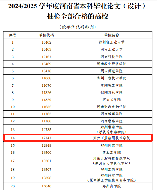 (文图/谢欢乐)近日,河南省学位委员会办公室发布2024/2025学年度本科毕业论文(设计)抽检结果,我校160篇被抽检毕业论文(设计)全部顺利通过,合格率达到100%,充分彰显了我校本科人才培养的过硬质量和毕业生扎实的学术素养。