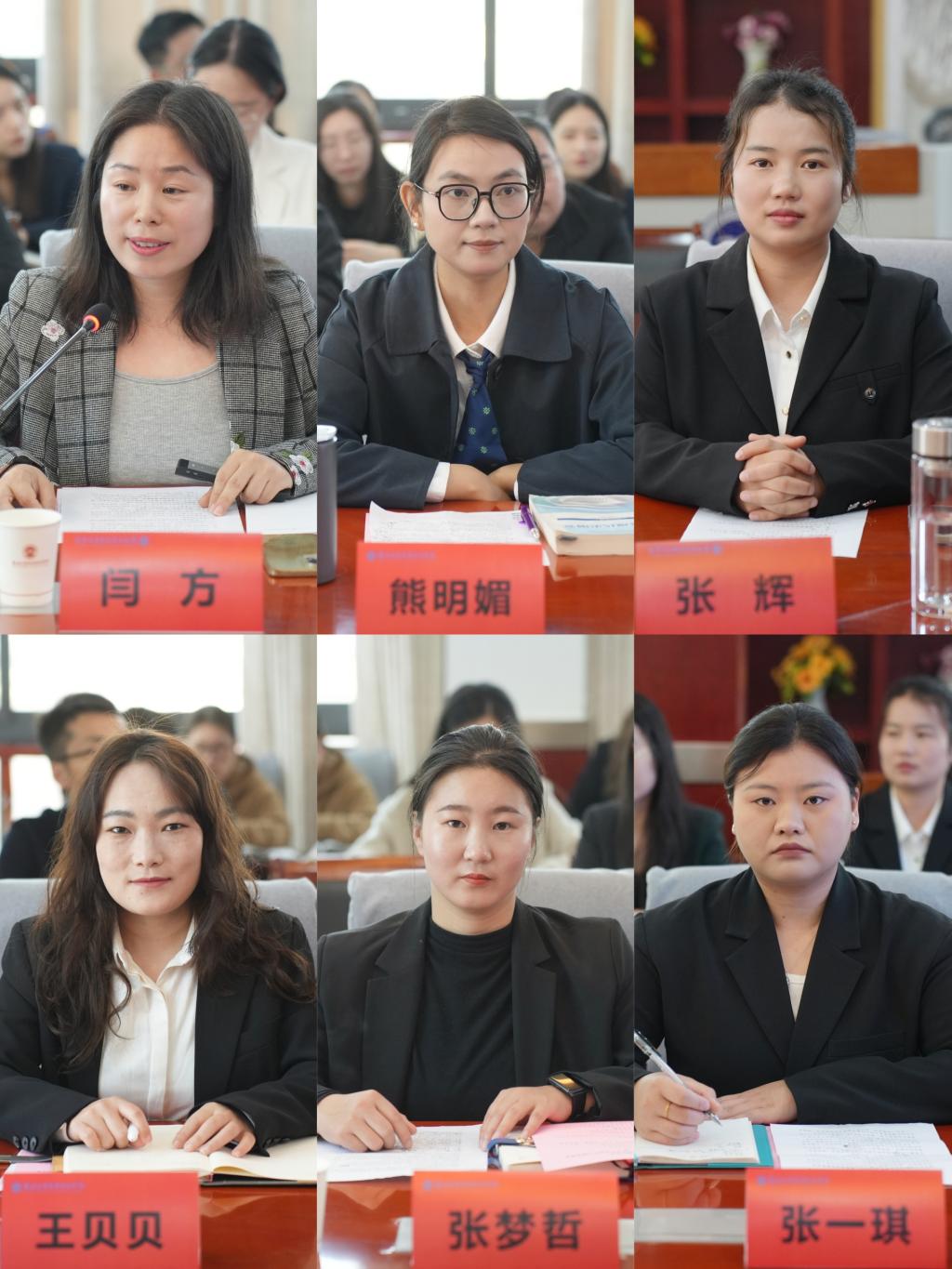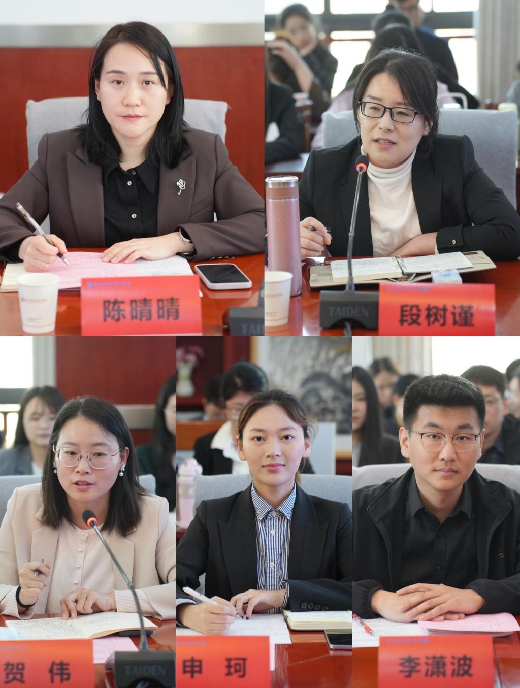 问题聚焦环节,《中国近现代史纲要》教研室主任闫方通过数据分析、课堂实录片段和问卷调研结果,作了翔实的课堂学情深度分析报告;青年教师代表熊明媚、张辉分享了教学创新实践、微案例及微活动经验;辅导员代表王贝贝、张梦哲、张一琪结合一线经验,分享了学情洞察、学生关注热点、心理状态与专业特点,为实施协同育人提供了宝贵思考。