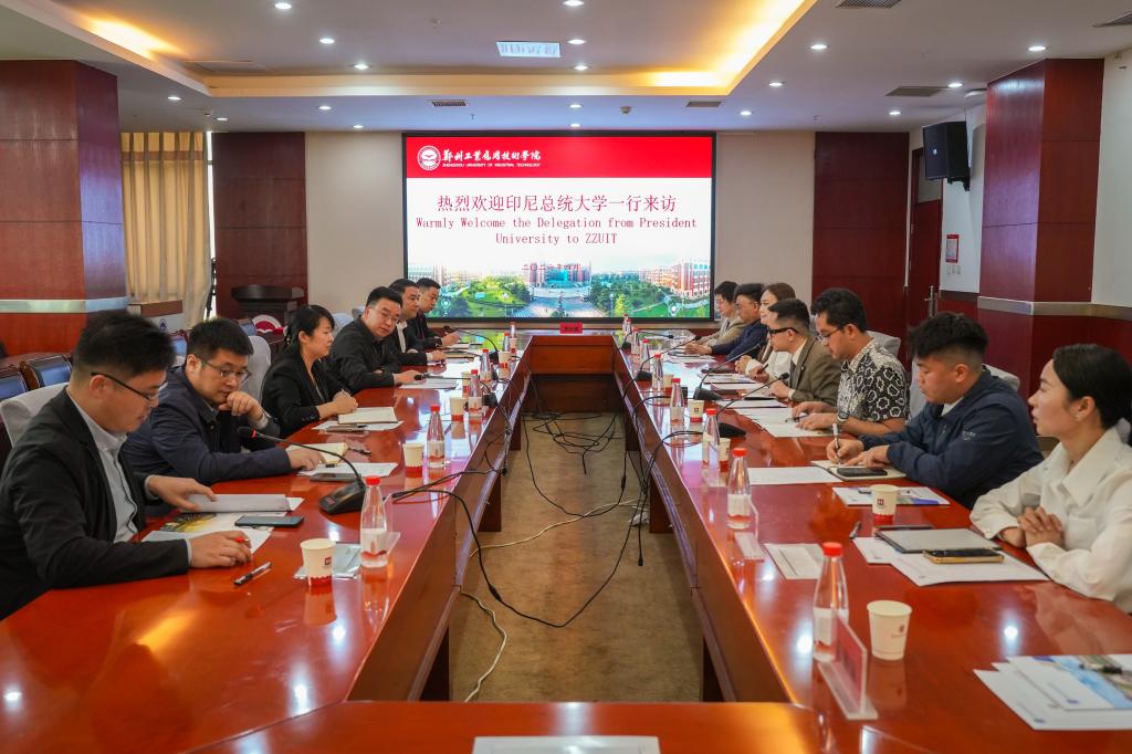 贾圣强向印尼总统大学一行的到来表示欢迎,并详细介绍了学校的办学特色、学科专业优势、人才培养及国际化办学成果等。他对印尼总统大学的办学实力与育人成果给予高度肯定,希望宽领域、深层次开展联合人才培养。