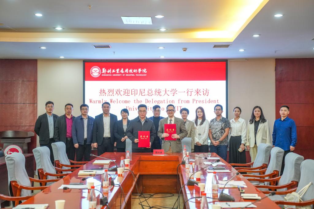 (文/董珍珍 图/刘婷)4月15日,我校与印尼总统大学联合培养项目洽谈会在行政管理中心六楼会议室举行,并签订友好合作协议。副校长贾圣强,工会主席、校长助理高红艳;印尼总统大学校长Handa S. Abidin(汉达・S・阿布丁)、印尼总统大学中国方合作关系专员Satryatama Ekaputra(萨特里亚塔马・埃卡普特拉)、印中商务中心人力资源部负责人赵銮滢等出席会议,双方相关单位负责人参加。会议由国际交流处处长郑晓航主持。