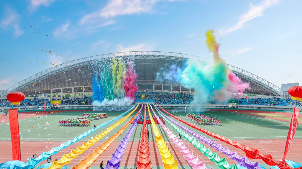 (文/陈欢 图/余有庆 李雯静 冷全宇 齐梦扬 刘佳)春和景明,活力飞扬。4月22日,东校区体育中心彩旗招展,学校第十一届运动会开幕式火热举行。在校校领导,各单位负责人,师生及运动员齐聚运动场,共同参加这场充满激情与活力的体育盛会。运动会通过官方视频号线上直播。开幕式由党委副书记、副校长吴杰霞主持。
