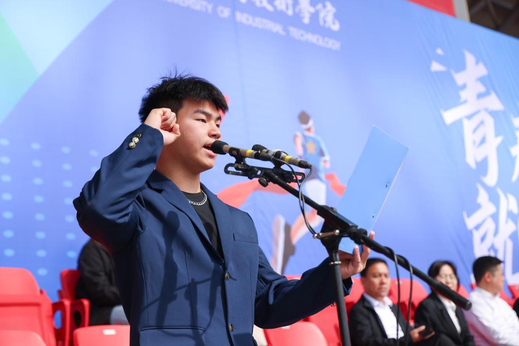 校长闫兵致开幕辞并宣布郑州工业应用技术学院第十一届运动会开幕。他代表学校党政领导班子向运动会的开幕表示热烈祝贺,向全体工作人员、裁判员、志愿者致以衷心感谢,向全体运动员致以亲切问候。闫兵指出,运动会是体能与速度、力量与耐力的竞技盛会,更是一次意志与精神、团结与文明的全面检阅。学校始终坚持立德树人根本任务,把强健体魄、健全人格、锤炼意志融入人才培养全过程。他希望,全校上下以运动会为契机,深入落实“健康第一”教育理念,以健康学校建设为引领,强化五育并举,推进五育融合,促进学生身心健康、全面发展;参赛运动员将赛场上不畏困难、永不言弃的体育精神转化为勤学善思、锐意进取的学习动力与工作热情;将强健的体魄、昂扬的斗志融入专业学习、成长成才的全过程,努力成长为德智体美劳全面发展的高素质应用型人才,为学校建设高水平应用型本科高校贡献青春力量。