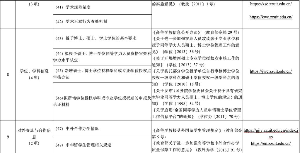 1.学位学科信息公开。通过学校教务处官网规章制度专栏发布《郑州工业应用技术学院学士学位授予工作实施细则》文件,以便老师和学生及时下载查阅。每年校学位评定委员会召开后,将学位授予红头文件发至党政办公室,发布至学校官网通知公告专栏,有助于学校树立良好的形象,提升学位的含金量,推动学位授予工作更加科学、规范、保证公正、公平、公开。新增学士学位授予专业经校外专家组审核、学校学位评定委员会审议、学校党委常委会会议研究后,将其结果公示至教务处官网教务公告专栏,接受公众监督,保证工作的公正性和透明度,同时增强学校在师生和社会中的公信力,提升学校的声誉和形象。
