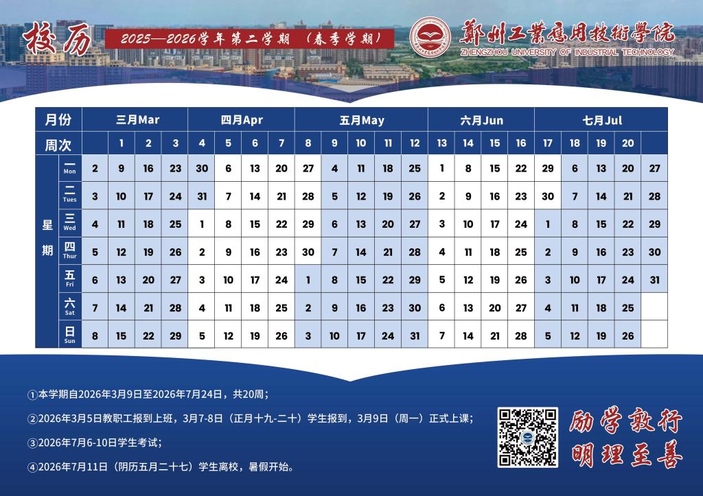 郑州工业应用技术学院2025—2026学年第二学期校历